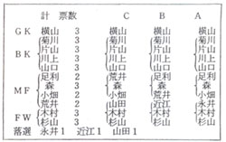 そのうえ、たとえば、荒井を中盤のプレーヤーとして投票する人と、バックとして投票する人が出てくるから、オールラウンドプレーヤーほど票が割れて、落選の憂き目をみることになる。