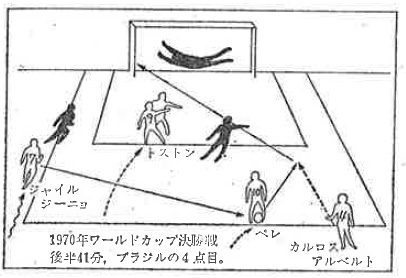 ぼくは神戸でペレのプレーぶりを見、藤島君の談話を聞いたときに、1970年メキシコ・ワールドカップの決勝戦、ブラジル対イタリアの試合で、後半41分にブラジルのあげた4点目のことを思い出した。