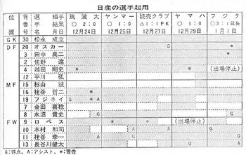 1回戦からの日産の選手起用を見てみると、加茂監督が厳しい組み合わせの中で、決勝戦までを見通しながら戦っていることが分かる。(表)