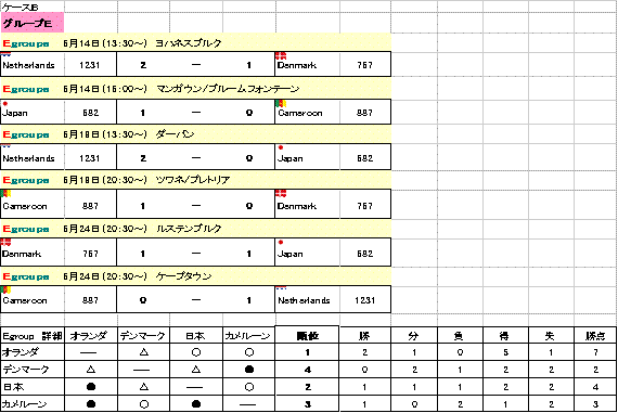 1. シミュレーションモデルの考え方 2. 【世界の常識ケース】FIFAランキングによる勝敗予想 3. 【日本スペシャル・ケース】:日本のベスト4シナリオ 4. ベスト4のための日本の戦略 5. 日本チームの編成 6. グループリーグの対戦相手メンバー |